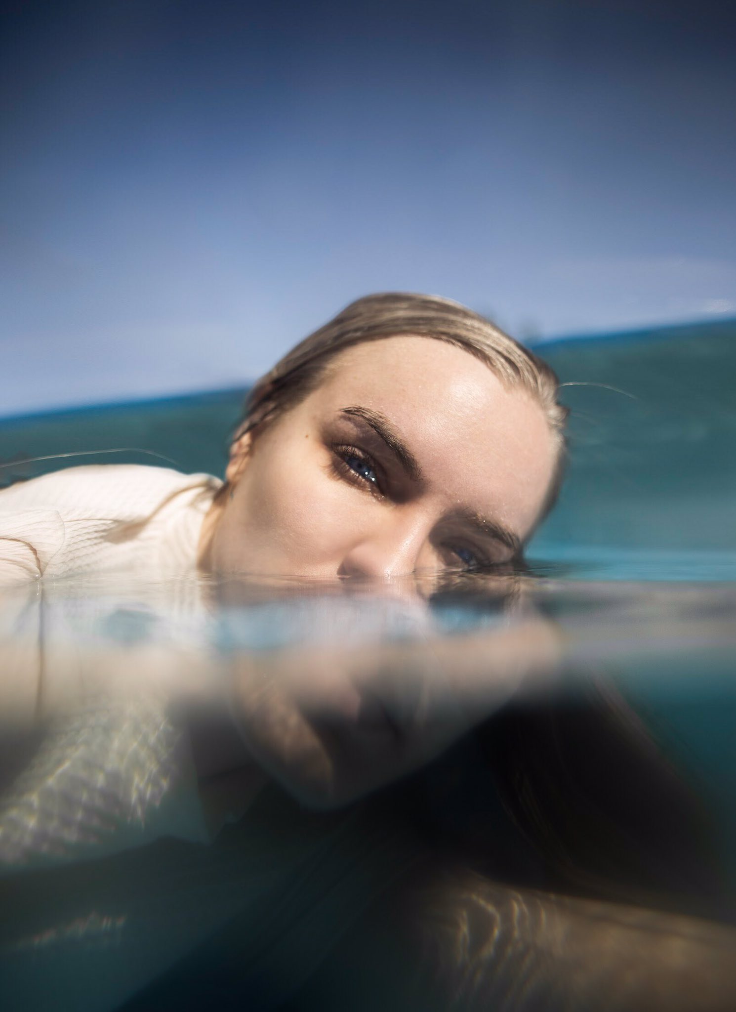 4. Had je verwacht dat dít is hoe de foto gemaakt werd? Als je het aan ons vraagt lijkt het wel alsof ze met trui en al in de zee ligt.