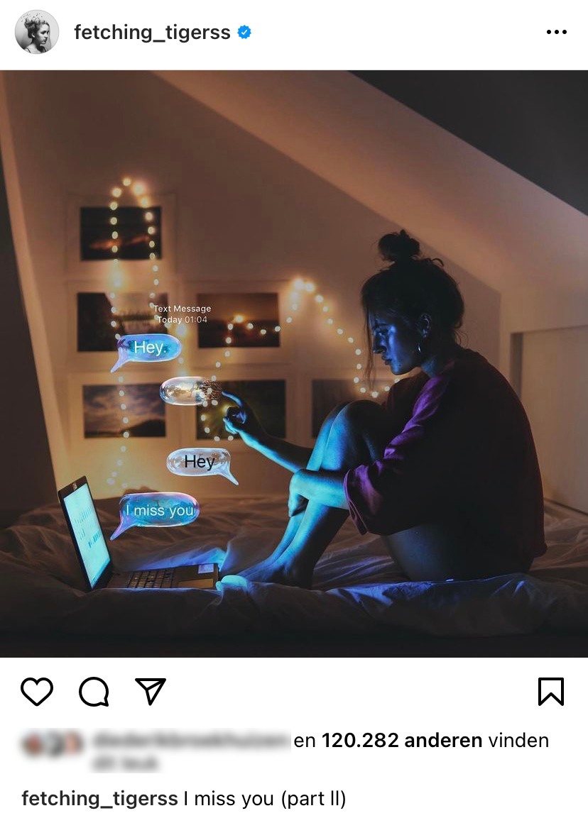 De eerste winnaar van de categorie ‘Beste Instagrammer’ is Annegien van Fetching Tigerss. Het kunstzinnige account zit vol met buitenaardse zelfportretten. Ze heeft voor het laatst in 2018 iets gepost; het werd iets te veel voor haar. Wat begrijpelijk is, want ze scoorde honderdduizenden likes van over de hele wereld.