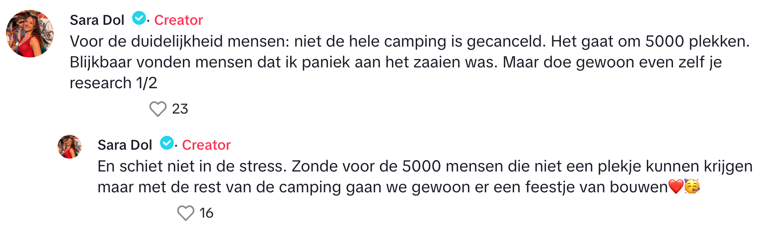 3. Het blijkt dat er online nogal wat verwarring is, dus drukt Sara de festivalbezoekers even met de neus op de feiten.