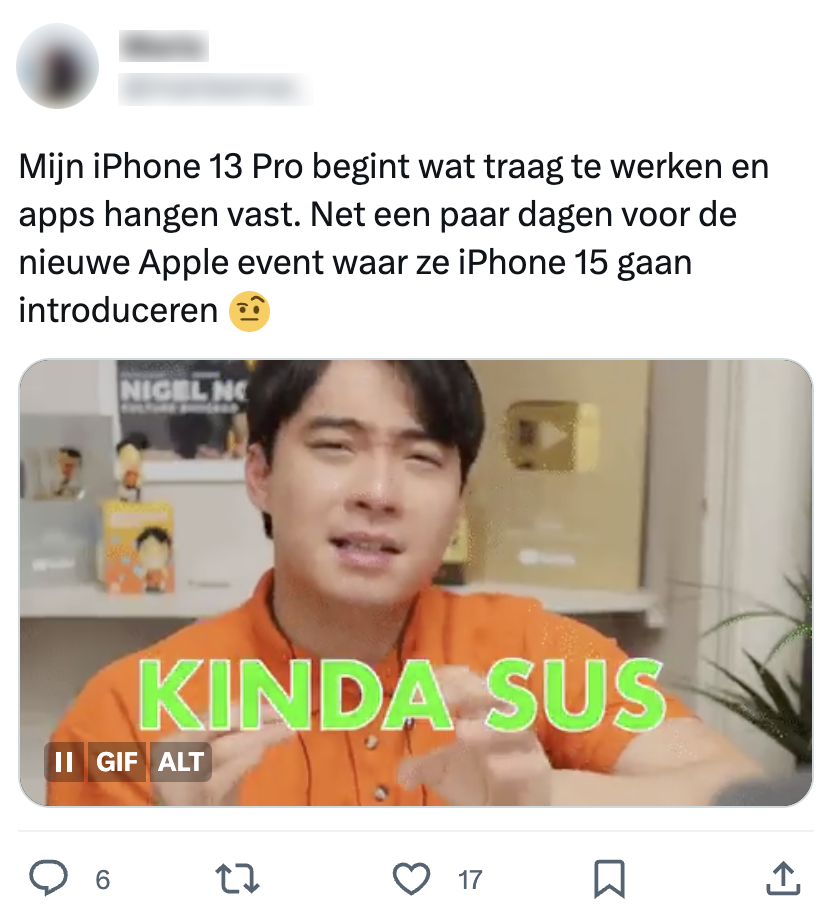 ‘Nee hoor heb hier me iphone jwz gr’#AppleEvent— nahahahahadhdie (@kikkererwtje) September 12, 2023