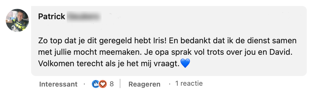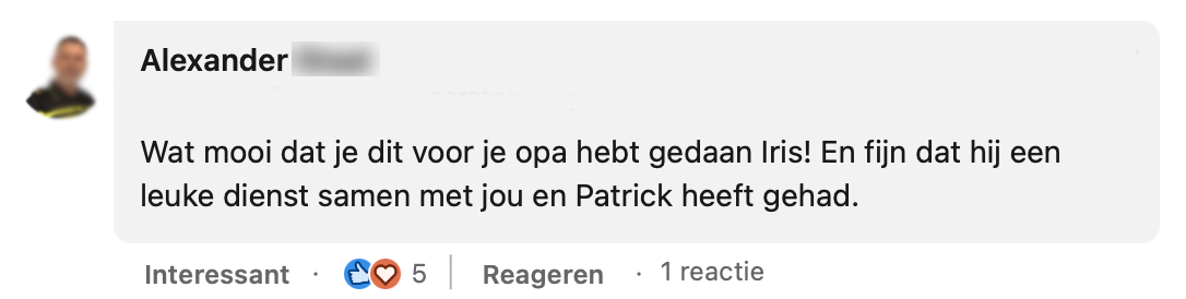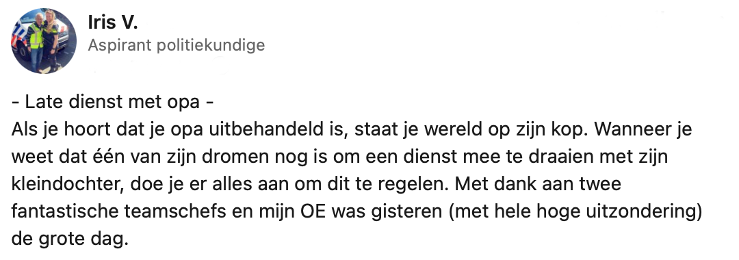 4. De collega’s van Iris vinden het erg bijzonder dat ze dit voor haar opa heeft geregeld.