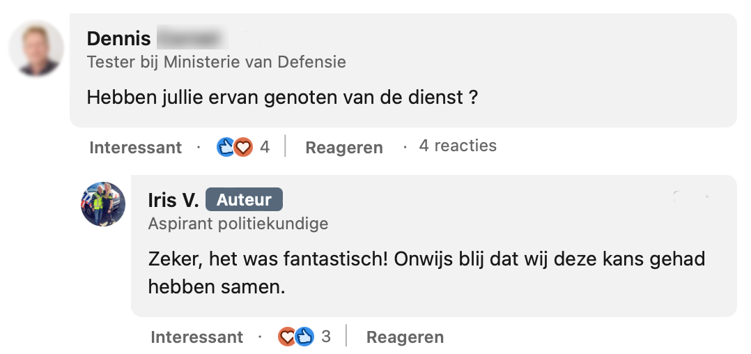 4. De collega’s van Iris vinden het erg bijzonder dat ze dit voor haar opa heeft geregeld.