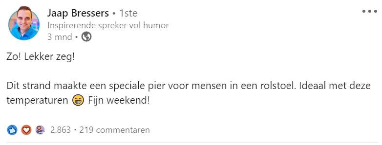 1. Zie hier Jaap, die met de nodige dosis humor zijn volgers inspireert op LinkedIn.