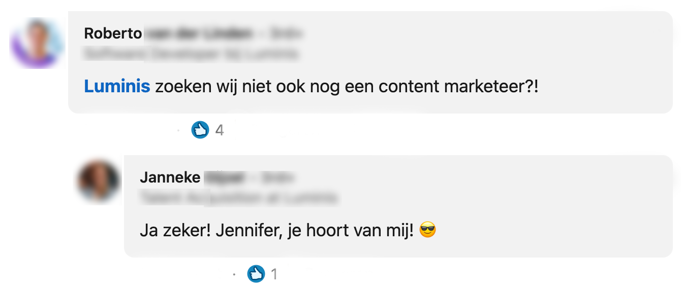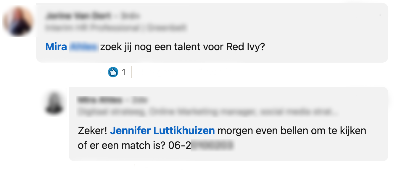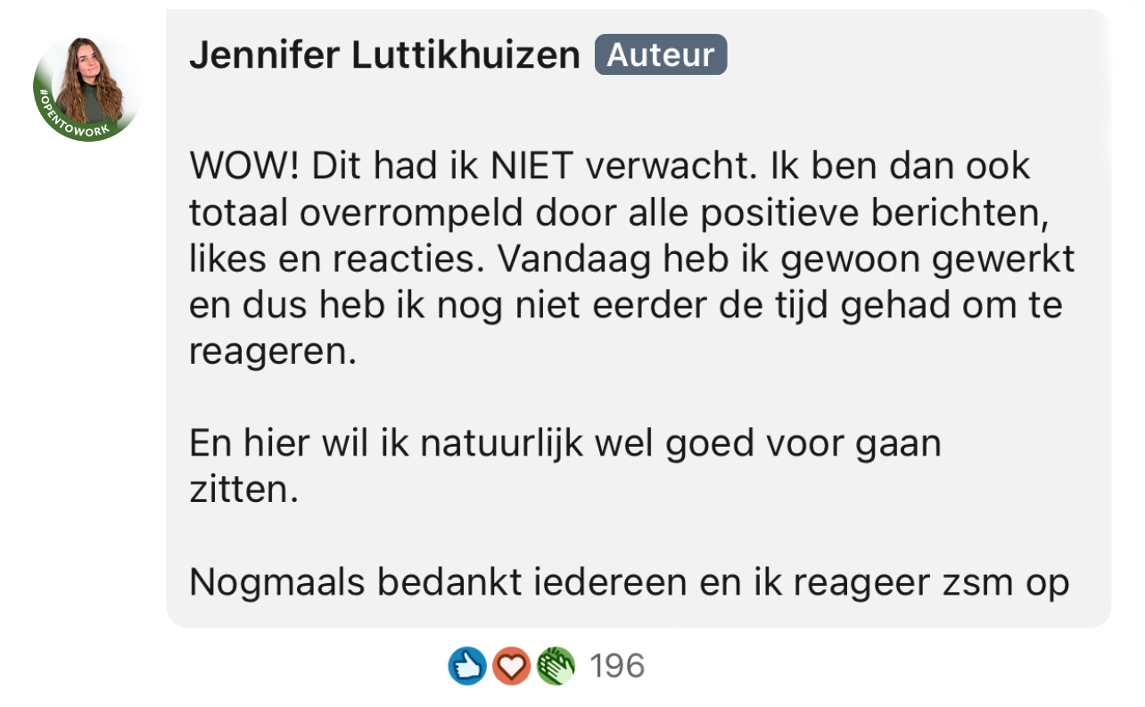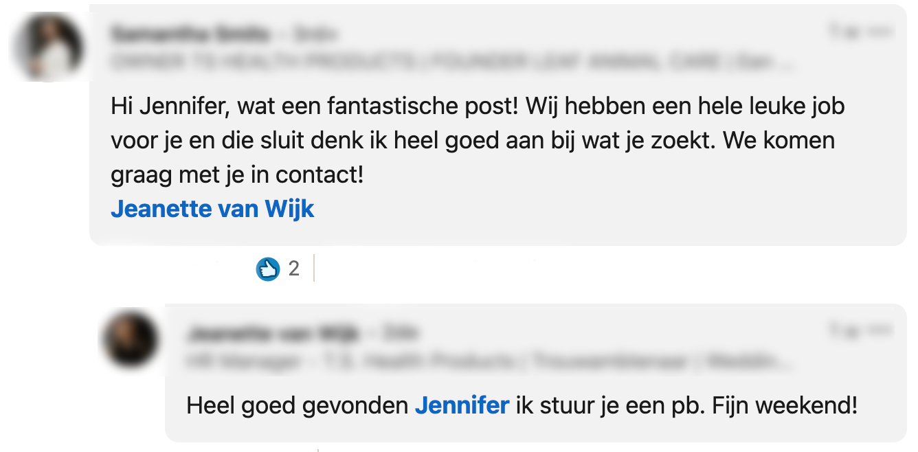 1. Dit is het bericht van Jennifer op LinkedIn.