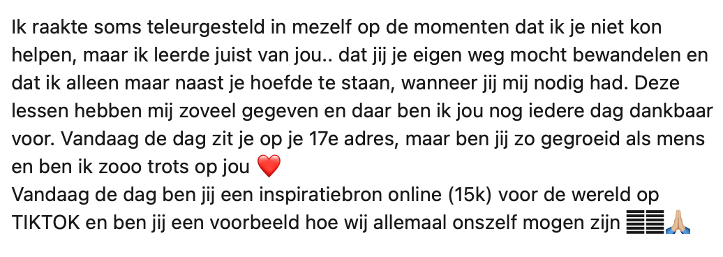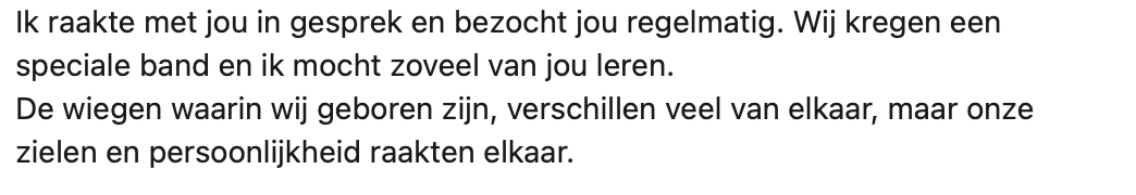 6. Hun verhaal maakt indruk op mensen en men vindt het bijzonder dat ze zoveel van elkaar hebben kunnen leren.