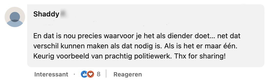 5. (Ex)-collega’s van Daniëlle vinden dit het perfecte voorbeeld van goed politiewerk.