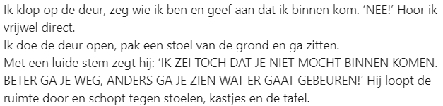 3. Hij lijkt te kalmeren en begint te vertellen wat hem dwarszit.