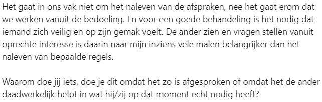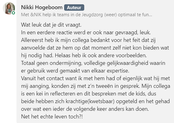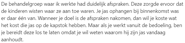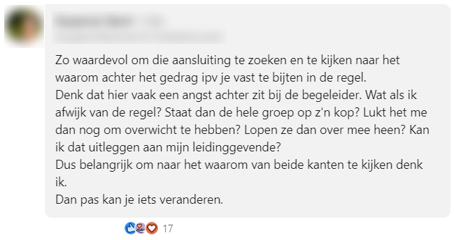 7. Deze reageerder vindt het ook belangrijk dat er op deze manier wordt omgegaan met de kinderen, maar begrijpt waarom dit moeilijk kan zijn.