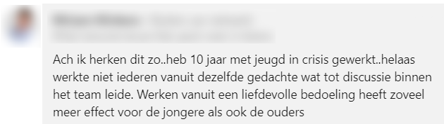 6. Collega-jeugdzorgmedewerkers herkennen zich in haar verhaal en zijn het eens met haar aanpak.