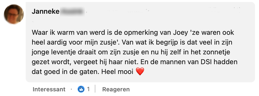 1. De vader van Joey regelde dat hij een dag mee kon lopen bij zijn grote helden van de DSI.
