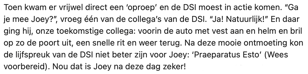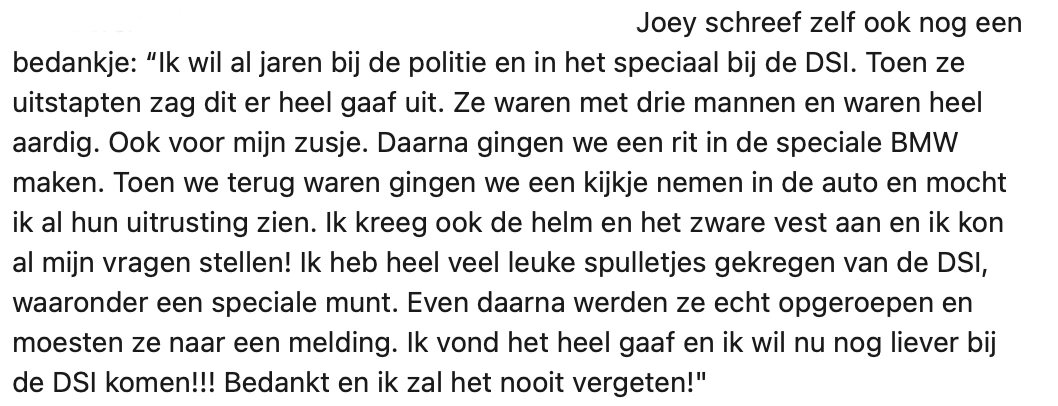 1. De vader van Joey regelde dat hij een dag mee kon lopen bij zijn grote helden van de DSI.