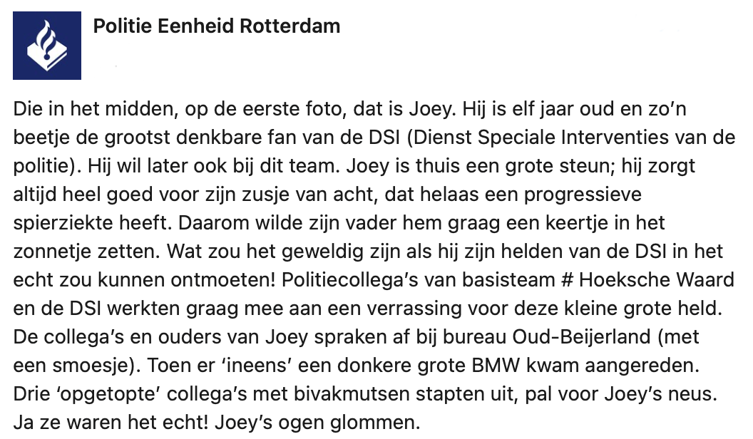 4. Mensen vinden het fantastisch dat de Dienst Speciale Interventie van de politie deze droom liet uitkomen.