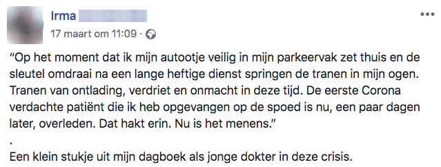 1. Irma werkt op de spoedeisende hulp, ze hielp daar een corona-patiënt die helaas aan het virus is overleden. Ze schrijft dit in haar dagboek.