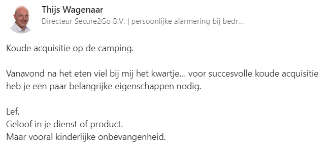 Als Thijs vakantie aan het vieren is op de camping, maakt hij onverwachts kennis met échte jonge ondernemers. Drie jongens bieden aan zijn afwas voor hem te doen voor de geweldige prijs van €2,50. Dit is een aanbod dat Thijs niet kan afslaan, zo vertelt hij op LinkedIn.