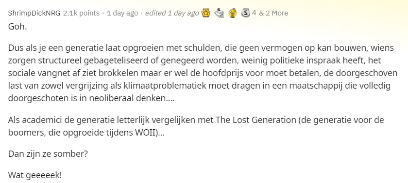 Afgelopen week publiceerde het AD een artikel over de toename van psychische klachten onder jongeren. Als verklaring wordt de coronacrisis genoemd. Reddit biedt een uitlaatklep en jongeren bespreken meer structurele oorzaken wat betreft hun mentale gezondheid.