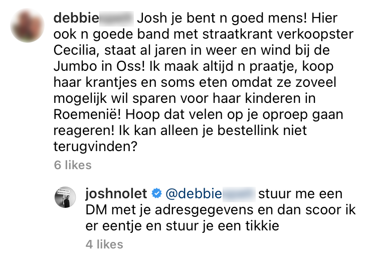 7. Veel mensen vinden het enorm lief van Joshua dat hij zijn favoriete straatverkoper even in het zonnetje zet. Daarbij doet hij nog eens extra veel moeite om de man te helpen.
