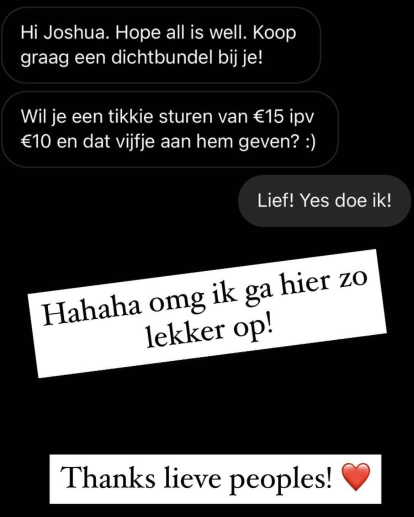8. Het kopen van de dichtbundel wordt enorm gewaardeerd. En sommigen staan er zelfs voor open om nog wat extra’s te geven.
