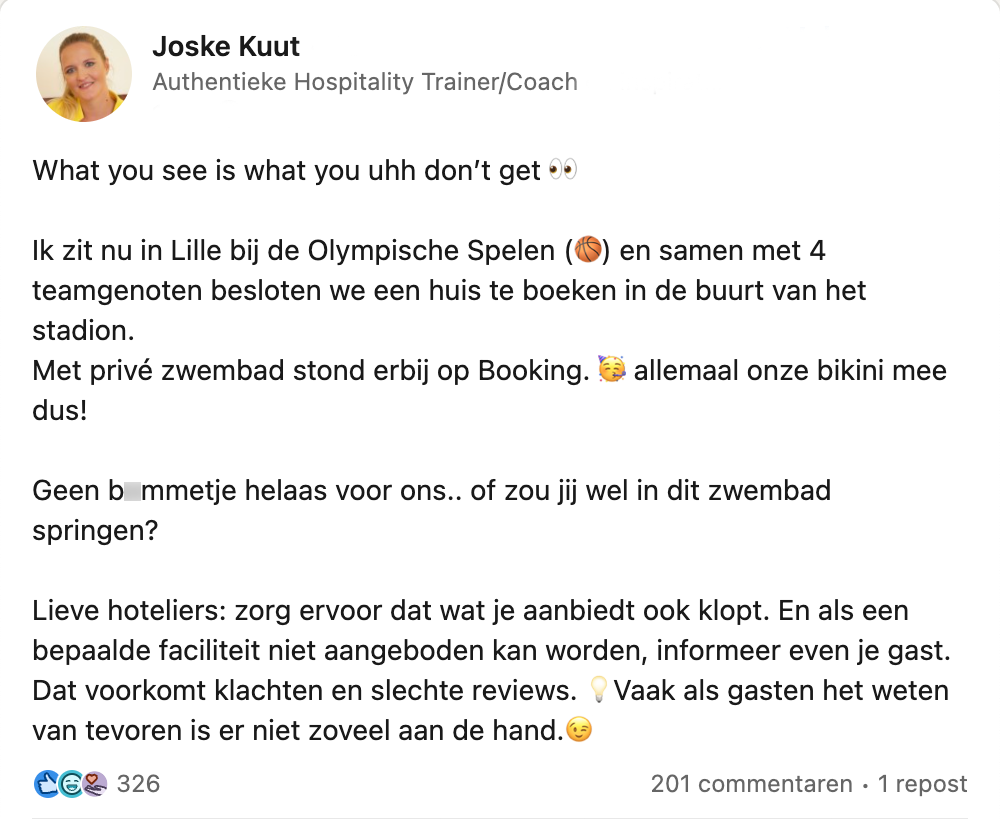 2. In tegenstelling tot het privézwembad, is de teleurstelling wél groot.