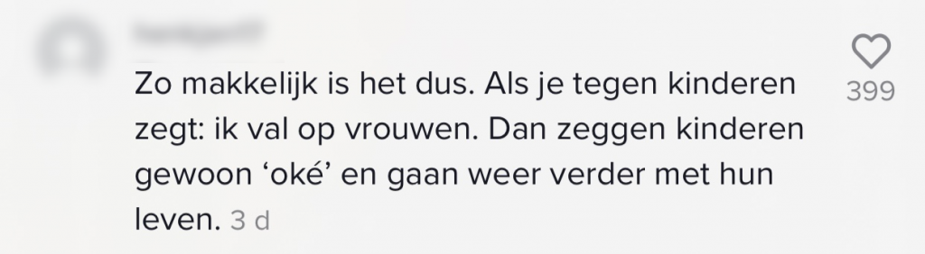 Kinderen groeien tegenwoordig op in een wereld waar iedereen steeds meer zichzelf kan zijn. Het is dan ook erg belangrijk dat kinderen op jonge leeftijd al leren elkaar te respecteren voor wie ze zijn. Toen Elise van haar leerlingen uit groep zes af en toe de vraag kreeg of ze al een vriendje had, besloot ze het daar met ze over te hebben. In de bijzondere les vertelde ze aan haar leerlingen dat ze op vrouwen valt, en van de reacties van de kinderen kunnen veel volwassenen nog wat leren.