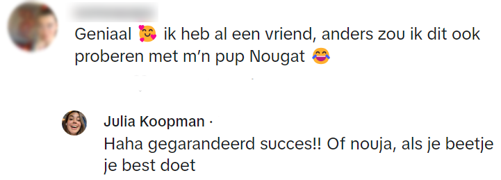 1. Julia laat met dit experiment zien dat zij eerder wingman is van de hond in plaats van andersom.