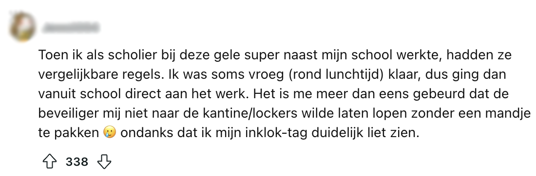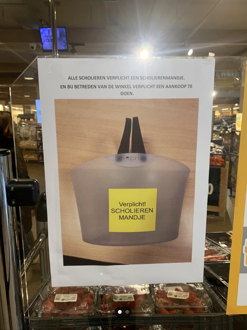 Het leven van middelbare scholieren is niet bepaald makkelijk. Ze moeten urenlang op school overleven zonder telefoon, genoeg geld sparen om iedere dag een frikandelbroodje en blikje energydrank te kunnen scoren en er ook nog eens voor zorgen dat hun ouders bij het openen van Magister die felrode 2,4 voor wiskunde niet zien staan. Zelfs een simpele boodschap doen kan voor hen een hele uitdaging zijn. Een klant spot in een Jumbo-filiaal namelijk een bord met daarop een opmerkelijke regel voor scholieren – en daar tillen Nederlanders op Reddit aardig zwaar aan.