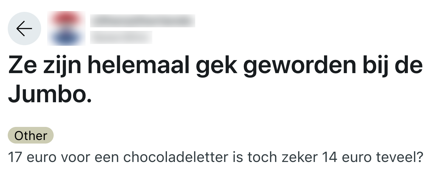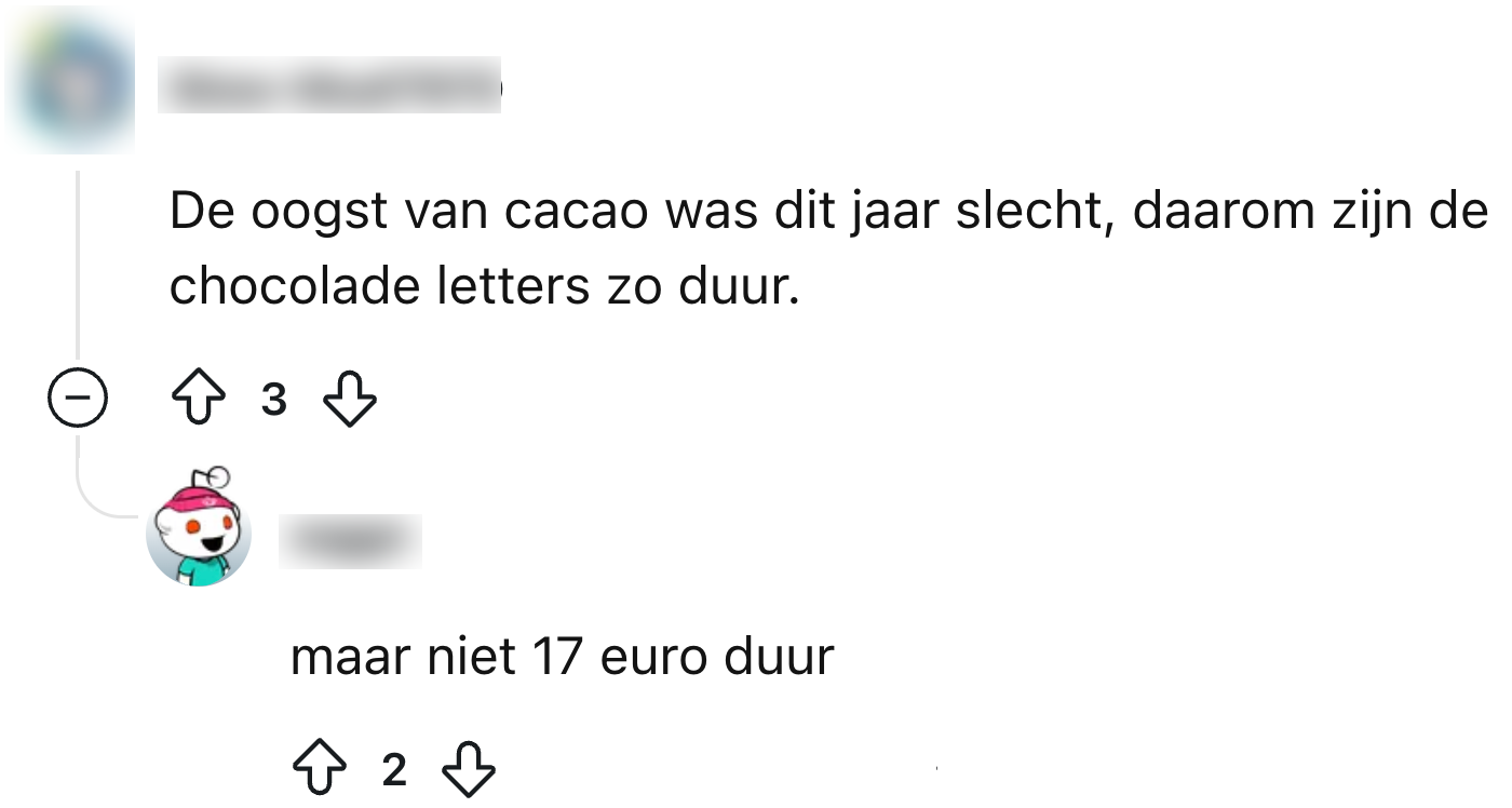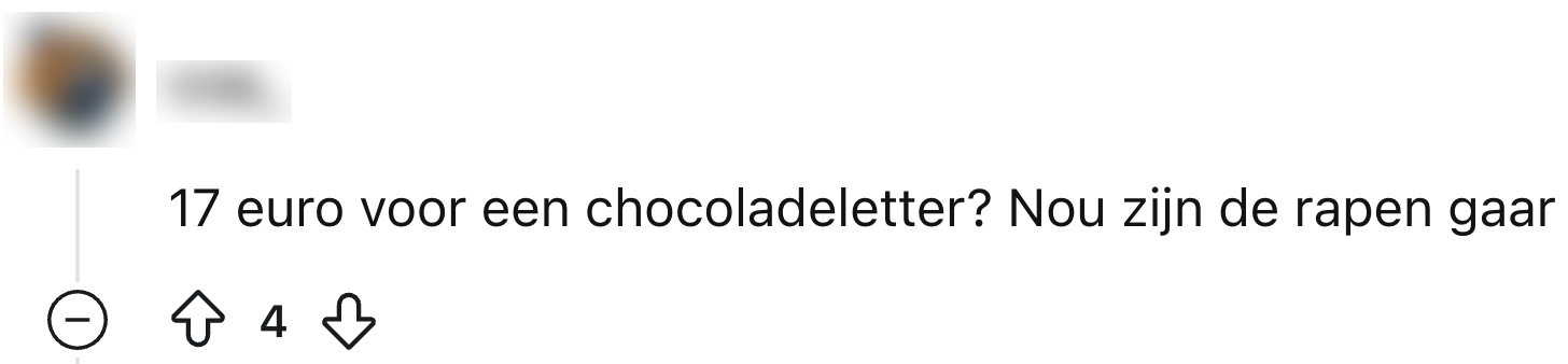 1. Mensen vinden de prijs van de Jumbo-chocoladeletter maar een harde (pistache)noot om te kraken.