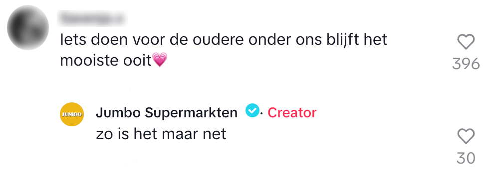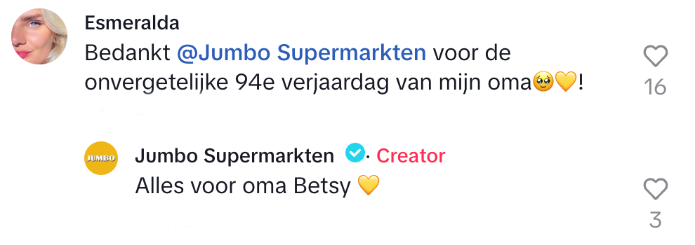 2. Betsy’s kleindochter bedankt de supermarkt nog even en Jumbo geeft een heel toepasselijk antwoord.
