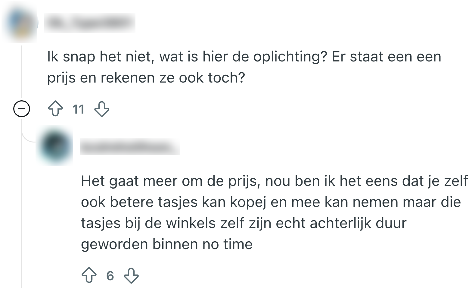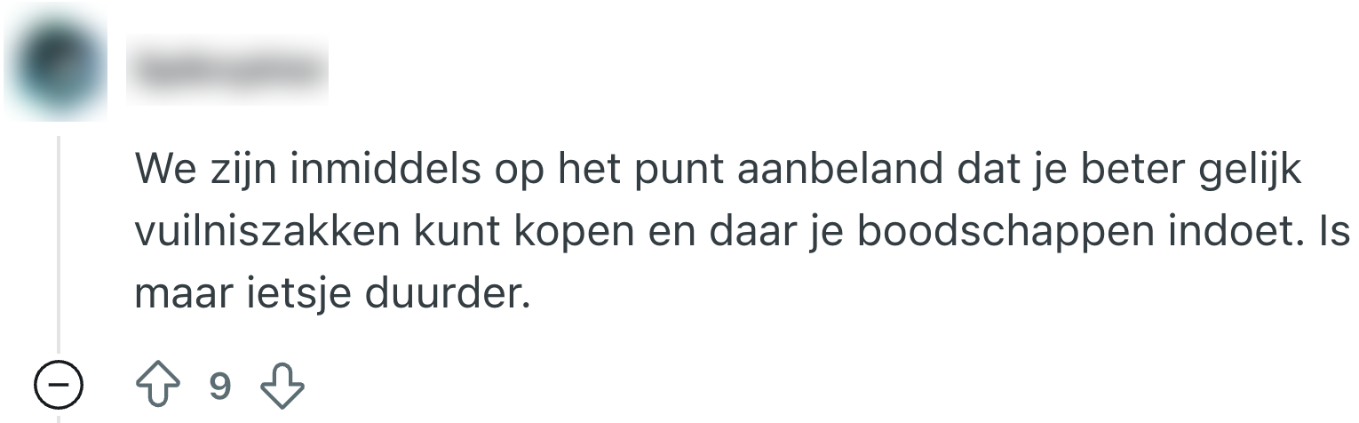 1. Deze Jumbo-klant is helemaal klaar met de prijs die tegenwoordig voor een tasje wordt gevraagd.