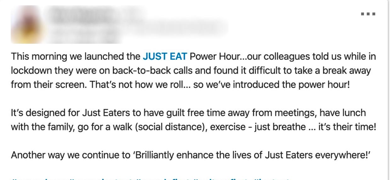 Je hebt het misschien vaker gehoord, maar deze gekke tijden zorgen ook voor ontzettend veel innovativiteit bij bedrijven. Zo ook bij JUST EAT, want zij hebben iets uitgevonden waar je werkelijk steil van achterover slaat. Want de award voor beste LinkedInpost gaat naar…