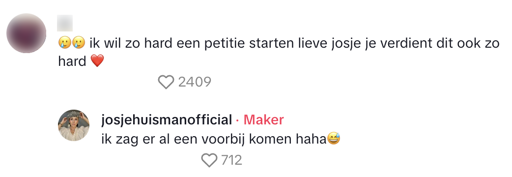 10. Hoe dan ook: een K3-liefhebbers bewonderen de manier waarop Josje met haar teleurstelling omgaat.