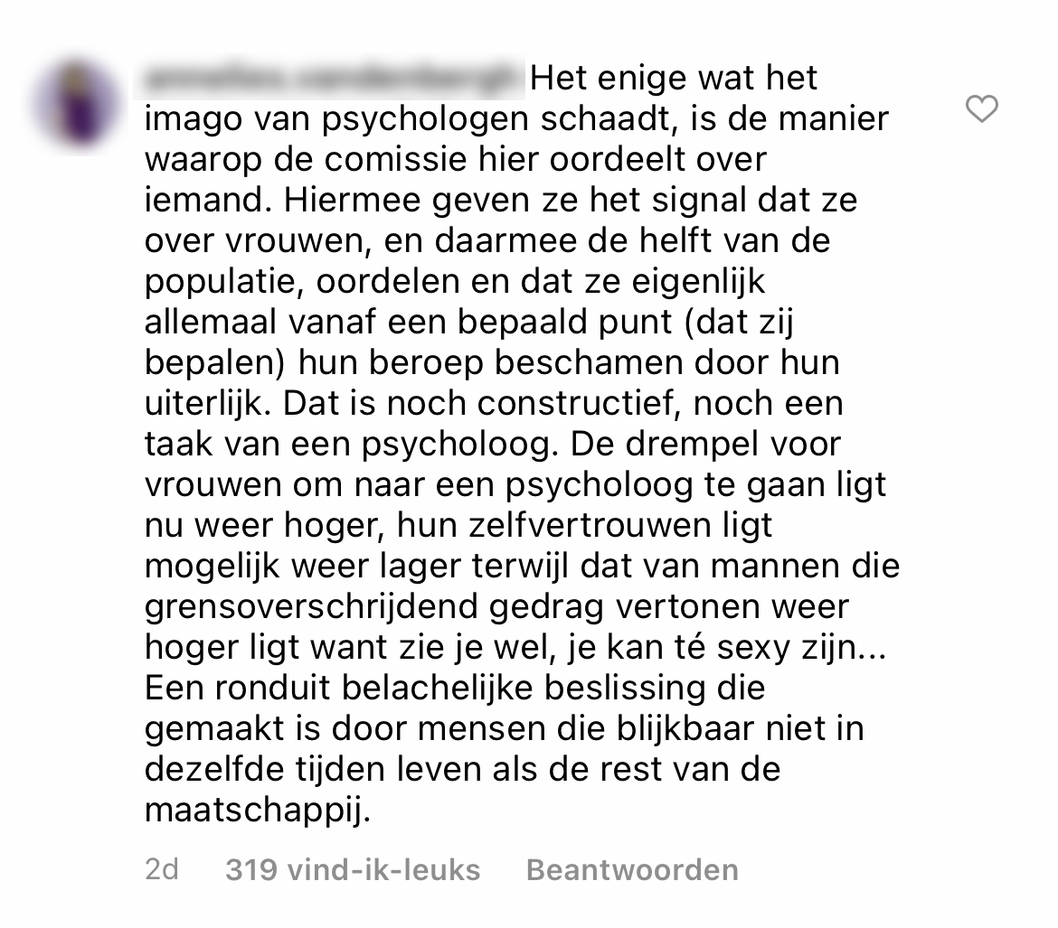 Hoog tijd om die psychologencommissie te herzien. Volgens mij komen we in deze tijden, dankzij het beleid van onze regering, psychologen tekort. Er zijn wachtrijen van 2 jaar voor kinderen die hulp zoeken. Kan die commissie vervolgd worden, schuldig verzuim? In echte rechtbank?
