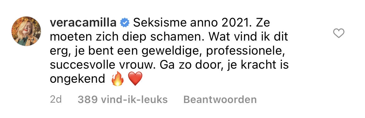 7. Ook op Twitter blijft het niet onbesproken. Onder andere in de comments onder haar eigen tweet.
