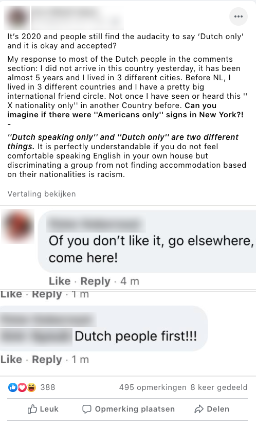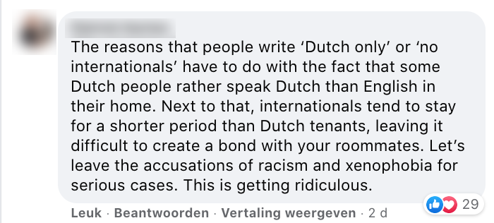 Als je op zoek bent naar een woning in Amsterdam ben je vast wel bekend met de Facebook-groepen waar kamers aangeboden worden. Naast het feit dat er regelmatig inloopkasten voor een hoofdprijs worden aangeboden, is er ook een andere opmerkelijke eis die vaak terugkeert, namelijk de ”Dutch only” opmerking. Wat hier nou precies mee bedoeld wordt, is een discussiepuntje.