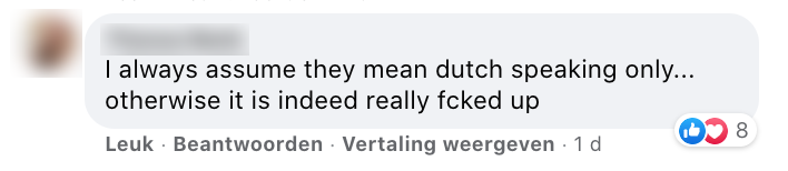 5. Toch komt de tekst ”Dutch only” verkeerd over bij sommigen.