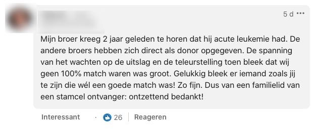 4. Ze zijn haar en andere donoren heel erg dankbaar.