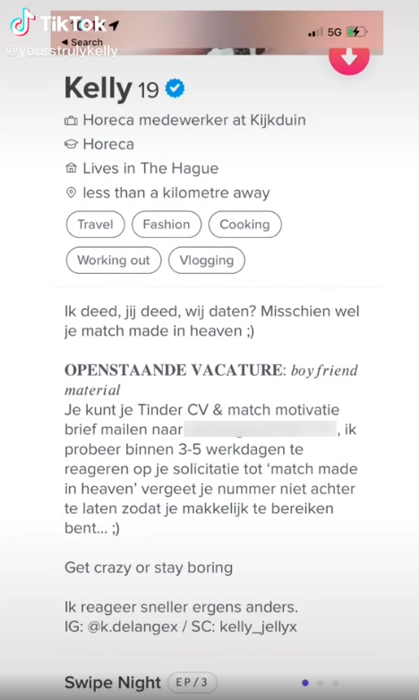 Kelly zet ‘vacature’ in Tinderbio en de creatieve sollicitanten stapelen zich op