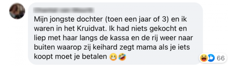 Ik liep net in een Lidl vol lege schappen waar een man op een scootmobiel achtervolgd werd door een jongetje dat op z’n moeders schoot haar rolstoel bediende. “WAAROM KOOP JIJ ZOVEEL WORSTEN?” vraagt het jongetje. De man rijdt gauw naar de kassa. “SUCCES MET JE WORSTEN!!!!”