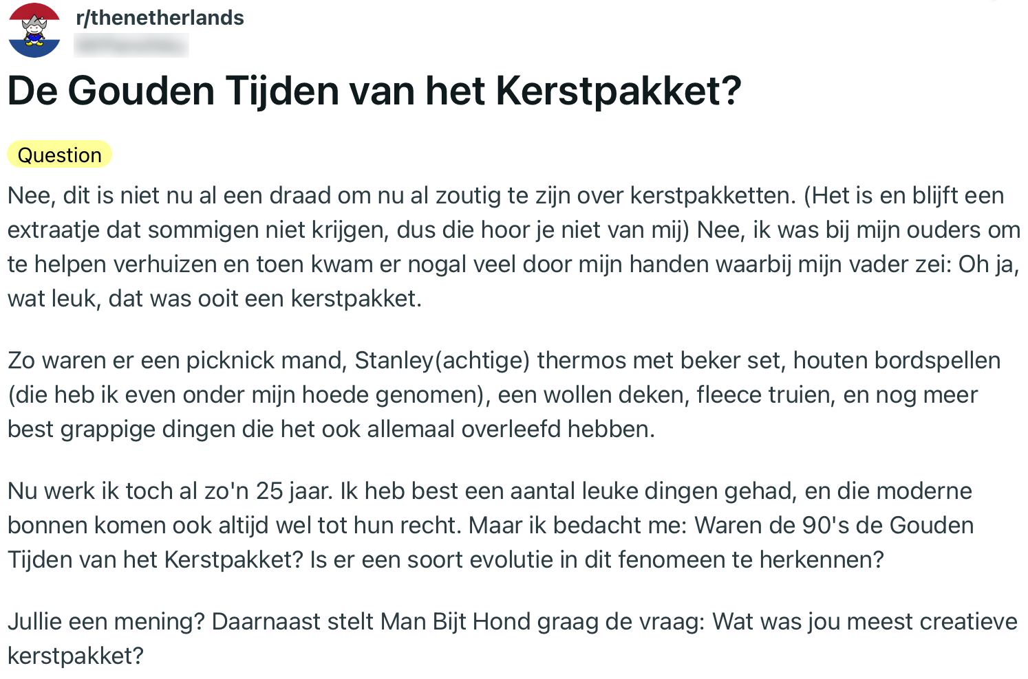 1. Deze Reddit-gebruiker vraagt zich af of kerstpakketten hun beste tijd al hebben gehad.