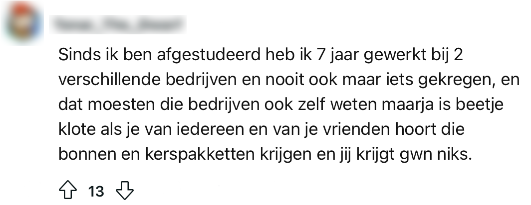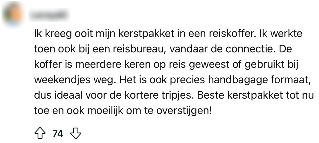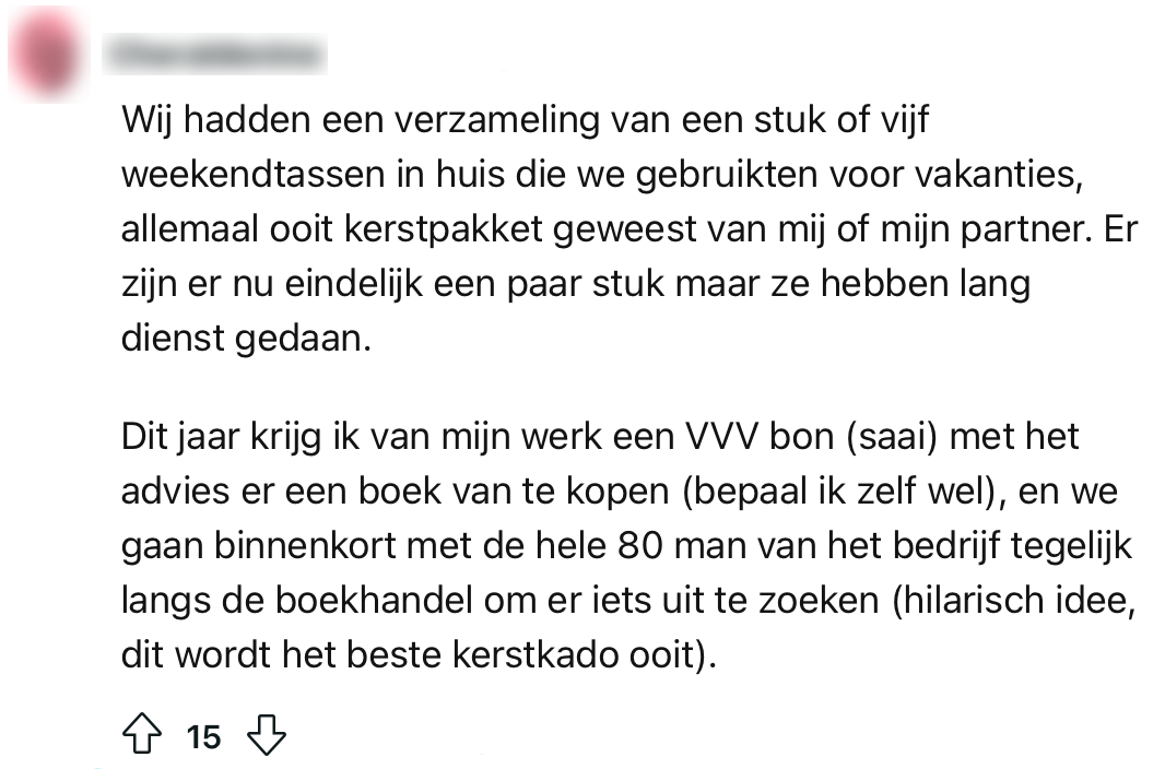 Voor veel werkende mensen betekent kerst ongeduldig en nieuwsgierig wachten op je kerstpakket. Tegenwoordig is het echter niet altijd meer de standaard doos met boodschappen die je nooit zelf in huis zou halen, maar krijg je in plaats daarvan bijvoorbeeld een Bol-cadeaukaart. Een Reddit-gebruiker vraagt zich af wat de leukste kerstpakketten zijn geweest die mensen ooit hebben ontvangen en de creativiteit spat van het scherm.