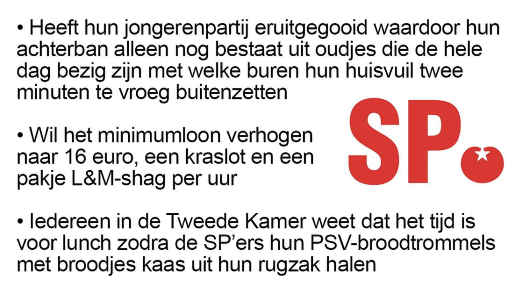 17. Terwijl FvD misschien wat minder aan de (pis)bak moet.