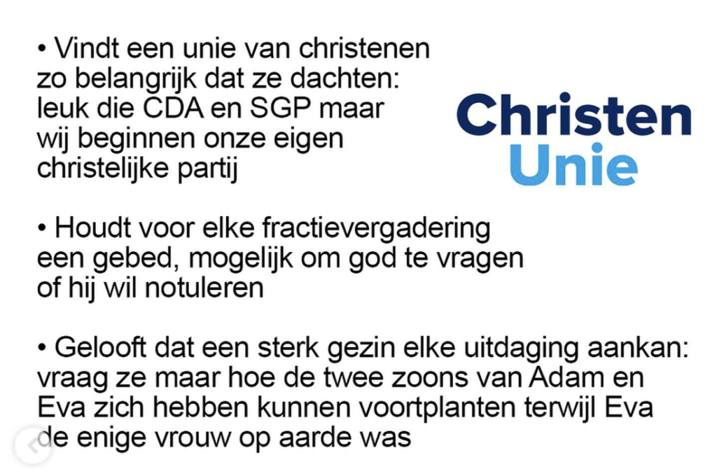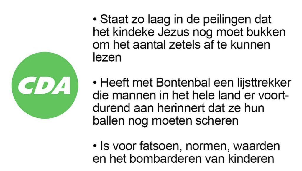 10. Kan dat kindeke Jezus mooi samen met D66 naar de chiropractor.
