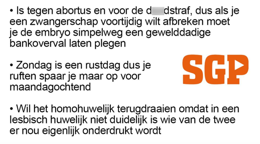 7. Bij SGP is het ook niet bepaald ruftig volgens deze kieswijzer.