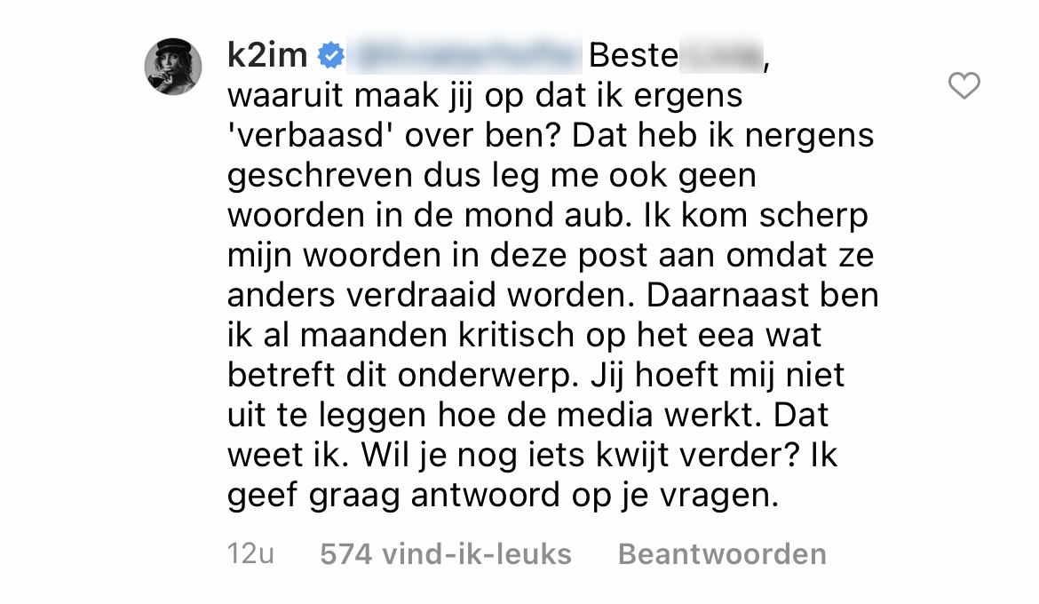 9. Tot slot reageert Kim op deze reactie om nog eens haar boodschap te verhelderen.