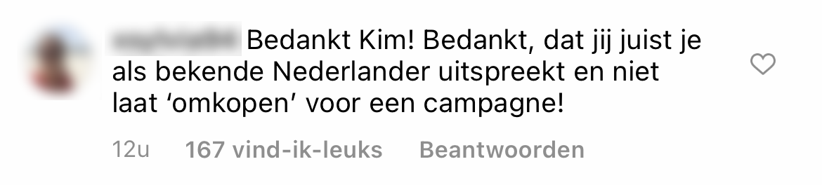 5. Veel mensen in de comments zijn blij dat Kim zich hierover uitspreekt.