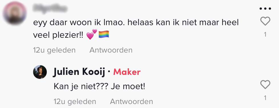 3. Op TikTok zijn de volgers van Julien benieuwd naar de Pride optocht.