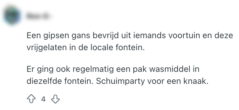 9. Die gans hoorde gewoon niet thuis in een voortuin. Ook niet in een fontein, trouwens.