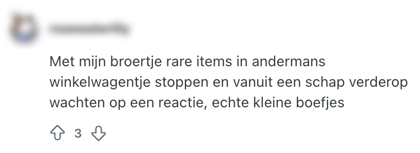 Als je als volwassene bij iemand aanbelt en keihard wegrent, papieren vliegtuigjes naar je baas gooit tijdens een meeting of de boomhut van de buurtkinderen sloopt, kun je op vreemde blikken – en met een beetje pech op meet and greet met de politie – rekenen. Als kind kwam je daar echter met gemak mee weg. Een Reddit-gebruiker vraagt naar de meest asociale stunts die anderen al jaren op hun geweten hebben en de reacties stromen vol met kattenkwaad.