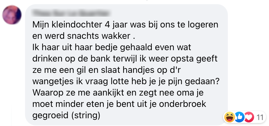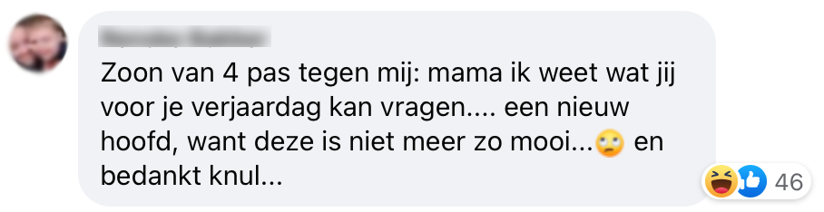 Af en toe kan je kinderen wel achter het behang plakken. Maar één ding moet je ze nageven: ze zijn wel altijd eerlijk. Soms zelfs net iets té eerlijk. Behalve als ze een extra snoepje uit de snoeppot hebben gestolen- dan wordt hun neus nog langer dan die van Pinokkio. Vorige week schreven we een artikel over kinderen bij wie je soms even tot tien moet tellen. Aan de reacties was te zien dat ook jullie vaak je geduld moeten bewaren. Vooral als je kind een opmerking maakt die je eigenlijk niet had willen horen…