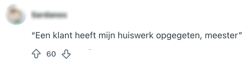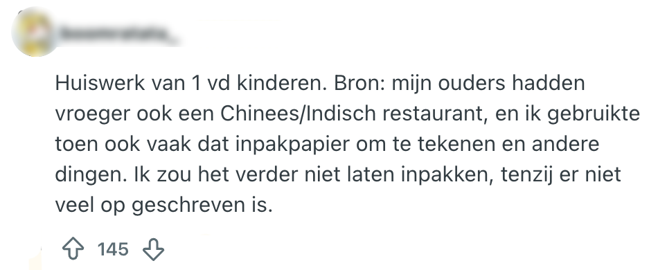 De ene dag snak je naar een typisch avg’tje, de andere dag naar een volledige rijsttafel. Een paar zompige aardappels koken, een slavink bakken en broccoli op tafel zetten lukt de meesten nog wel. Maar zo’n rijsttafel is een ander verhaal. Daar komt net wat meer voorbereiding en precisie bij kijken, en de kans dat het misgaat, is dus ook een stuk hoger. Geen wonder dus dat je zo’n maaltijd liever bestelt bij het lokale Chinese restaurant. Dat dacht deze klant ook. Alleen valt zijn oog bij het uitpakken van de bestelling ineens op een paar krabbels op het papier dat om de bestelling zit… en die wekken toch wel enige argwaan.