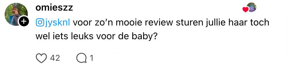 5. Er wordt meteen een poging gedaan om een inboedel van Jysk voor de baby te regelen.
